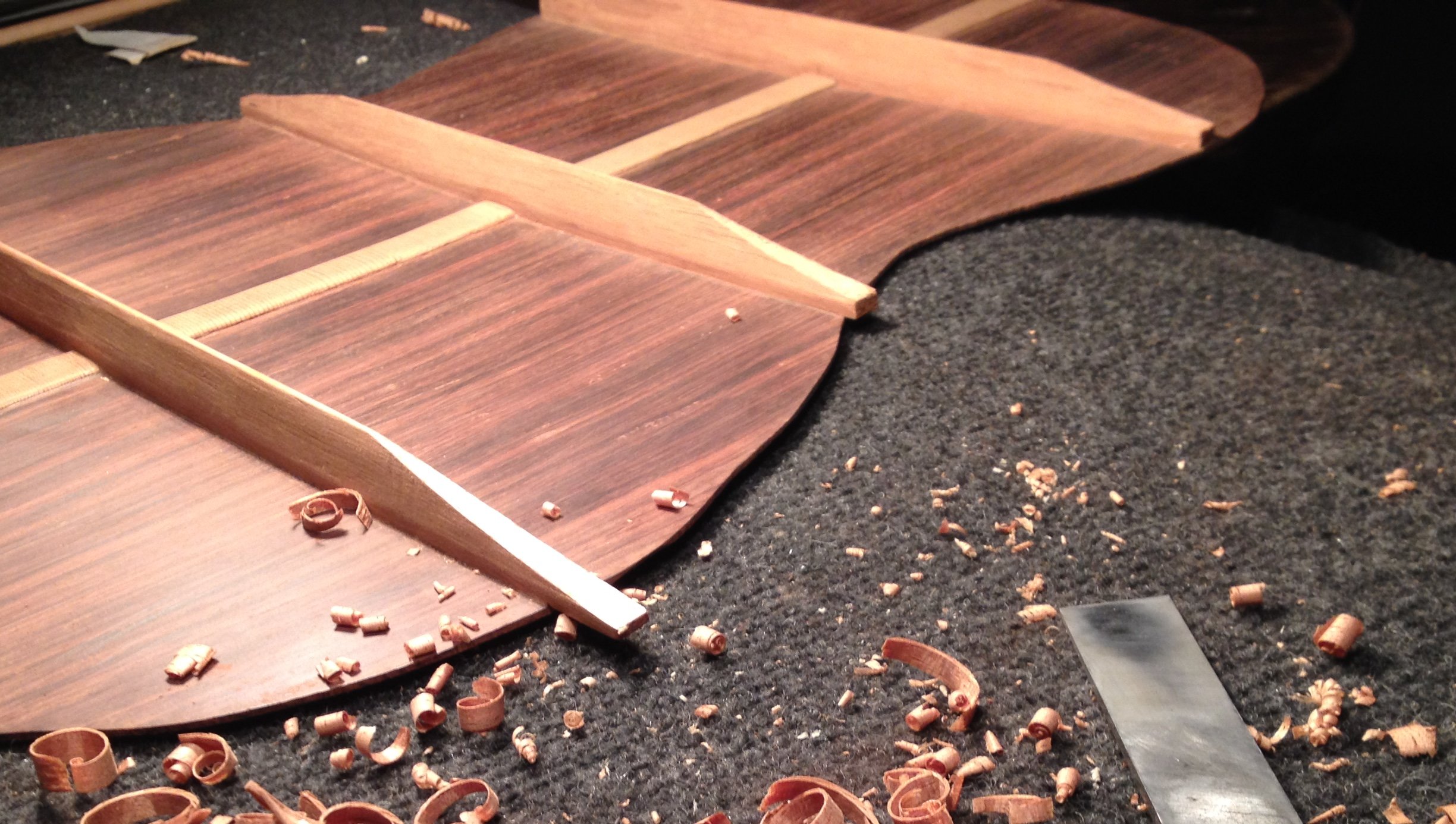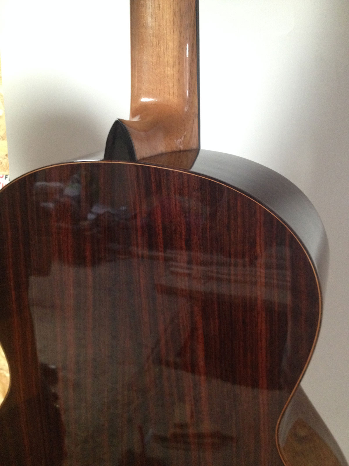 De nombreuses possibilités d’essences sont possibles pour le dos et les éclisses, voici trois exemples de magnifiques essences de bois, chacune ayant son propre caractère sonore :-