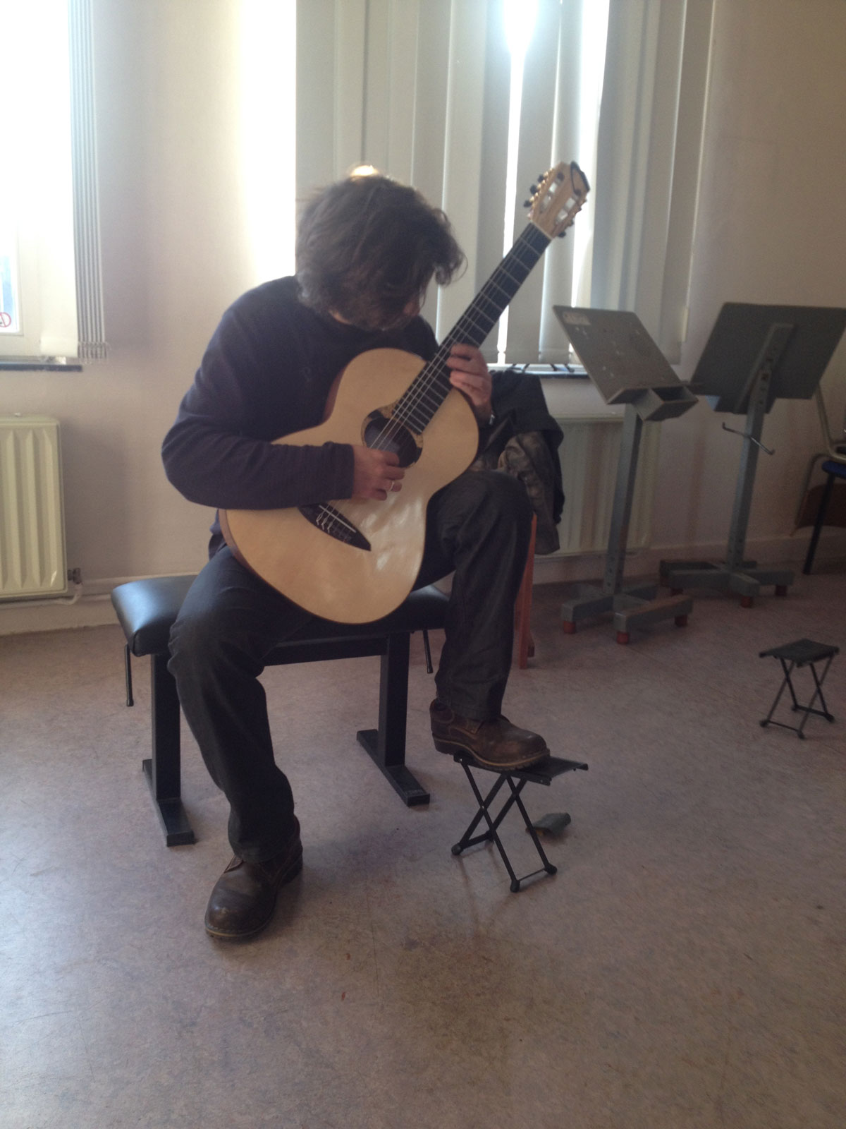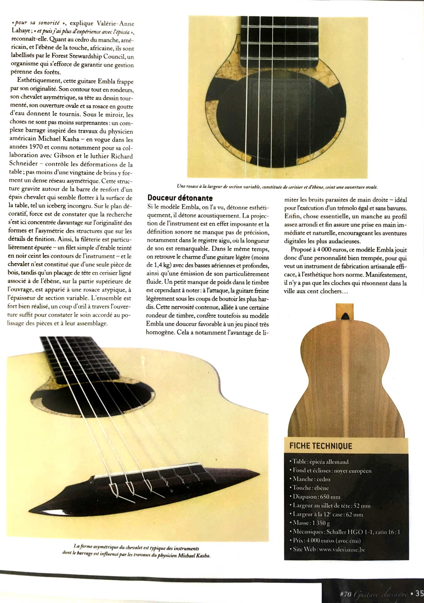 Ce modèle a été testé en banc d’essai pour garantir une qualité sonore exceptionnelle et une réactivité parfaite. Il a également été testé par le grand maître de la guitare Roland Dyens, qui appréciait particulièrement la combinaison de la table en épicéa avec le dos et les éclisses en érable. Ce choix de bois lui apportait une clarté remarquable et une projection sonore cristalline qu’il a particulièrement saluée. Son retour d’expérience témoigne de la qualité sonore et de la jouabilité de ce modèle, adapté aux besoins des musiciens les plus exigeants.