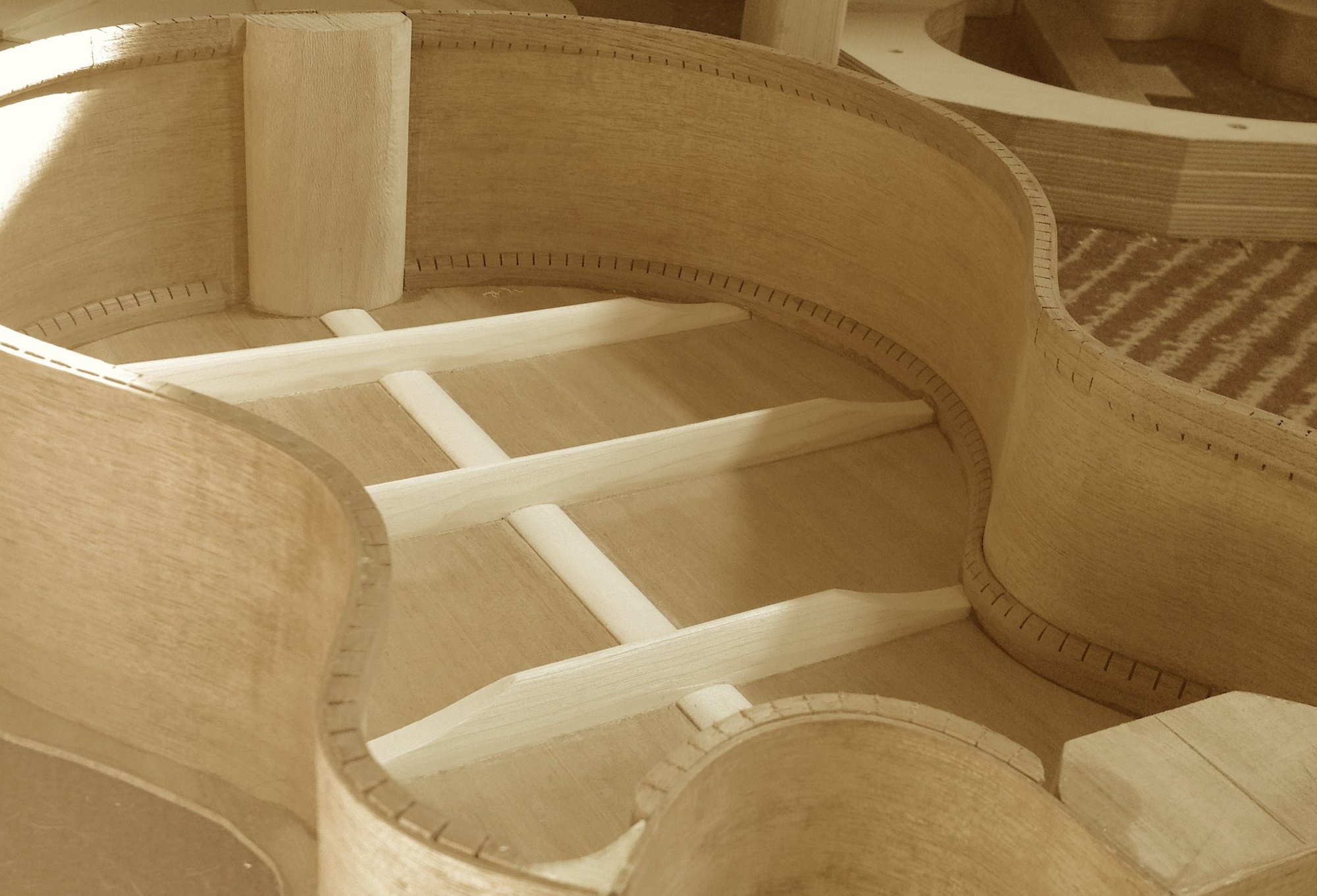 Cette guitare acoustique a été entièrement réalisée sur mesure pour le musicien de jazz Alain Pierre, un artiste passionné et impliqué dans de nombreux projets musicaux. Le défi était de créer un instrument qui allie simplicité, sobriété esthétique et une réponse harmonique exceptionnelle, tout en restant fidèle aux attentes d’un musicien professionnel exigeant.